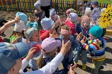 Сегодня воспитанники групп "Улыбка" (воспитатель Юшкова В.А.) и "Пчёлка" (воспитатель Паровая С.В.) приняли участие в различных мероприятиях, посвящённых Дню защиты детей.