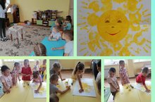 В рамках недели хорошего настроения педагоги организовали и провели интересные мероприятия с детьми. Педагог Файзуллина А.А со своими воспитанниками провела акцию "Подари улыбку": воспитанники дарили своим родителям и сотрудникам смайлики, а в ответ получали от них улыбки и хорошее настроение. Итоговым мероприятием недели стало коллективное нетрадиционное рисование ладошками солнышка и проведение эксперимента "радуга".