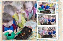 Беренче кече төркемдә тәрбияләнүчеләр, тәрбияче Каюмова А.В. белән бергә, суган утырттылар....