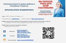 Уполномоченный по правам ребенка в Республике Татарстан Волынец Ирина Владимировна!