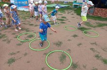 Сегодня в нашем детском саду прошли "Веселые старты". Воспитателями были организованы различные соревнования, в которых ребята соревновались в силе и ловкости.