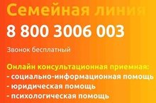 Федеральный номер Семейной линии 8-800-3006-003, который работает ежедневно и круглосуточно, предлагая заявителям безвозмездную социально-информационную, консултационную, юридическую и иную помощь.