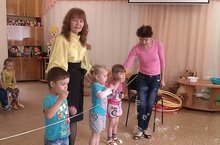Самых маленьких воспитанников «Золотой рыбки» пригласили на шоу мыльных пузырей ведущие З.Р.Ахмадуллина и А.В.Валиуллина,..