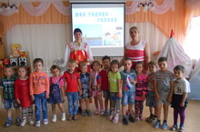 В музыкальном зале ДОУ для воспитанников средних и старших групп прошёл тематический час, посвящённый Дню России, который подготовили и провели воспитатели Л.И.Файрузова и Л.М.Казакова...