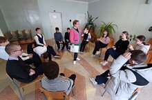 Тренинговое занятие «Давайте дружить» 23.11.2023 Неделя психологии. Тренинговое занятие «Давайте дружить» Классными руководителями Карповой З.В и Скворцовой Л.Н, Тихоновой И.А в рамках Недели психологии было проведено тренинговое занятие с учащимися 1-4, 5-8 классов МБОУ "Енабердинская СОШ» Цель: помочь детям войти в контакт друг с другом и с взрослыми, познакомить детей с правилами, которые способствуют созданию дружеских отношений. Задачи: коррекция и развитие процесса общения и взаимоотношений детей, развитие понимания личностных особенностей каждого человека, осознание восприятия себя окружающими людьми, получение навыка выстраивания дружеских отношений./Психология атналыгы. "Әйдәгез дуслашыйк" тренинг дәресе Карпова З. В. һәм Скворцова Л. Н., Тихонова и. А. ның сыйныф җитәкчеләре психология атналыгы кысаларында МБОУ Енабердинская СОШ 1-4, 5-8 сыйныф укучылары белән тренинг дәресе үткәрделәр Максат: балаларга бер-берсе белән һәм өлкәннәр белән элемтәгә керергә ярдәм итү, балаларны дуслык мөнәсәбәтләрен булдыруга ярдәм итүче кагыйдәләр белән таныштыру. Бурычлар: балаларның аралашу процессын һәм үзара мөнәсәбәтләрен төзәтү һәм үстерү, һәр кешенең шәхси үзенчәлекләрен аңлауны үстерү, тирә-юньдәге кешеләрнең үз-үзләрен кабул итүен аңлау, дуслык мөнәсәбәтләрен төзү күнекмәләрен алу.