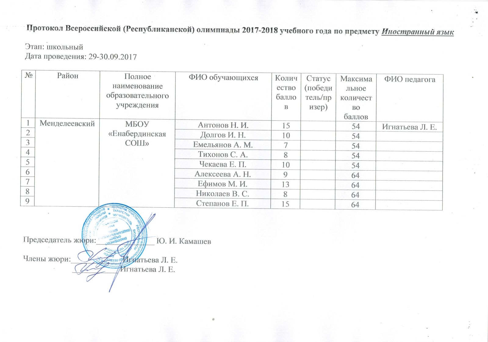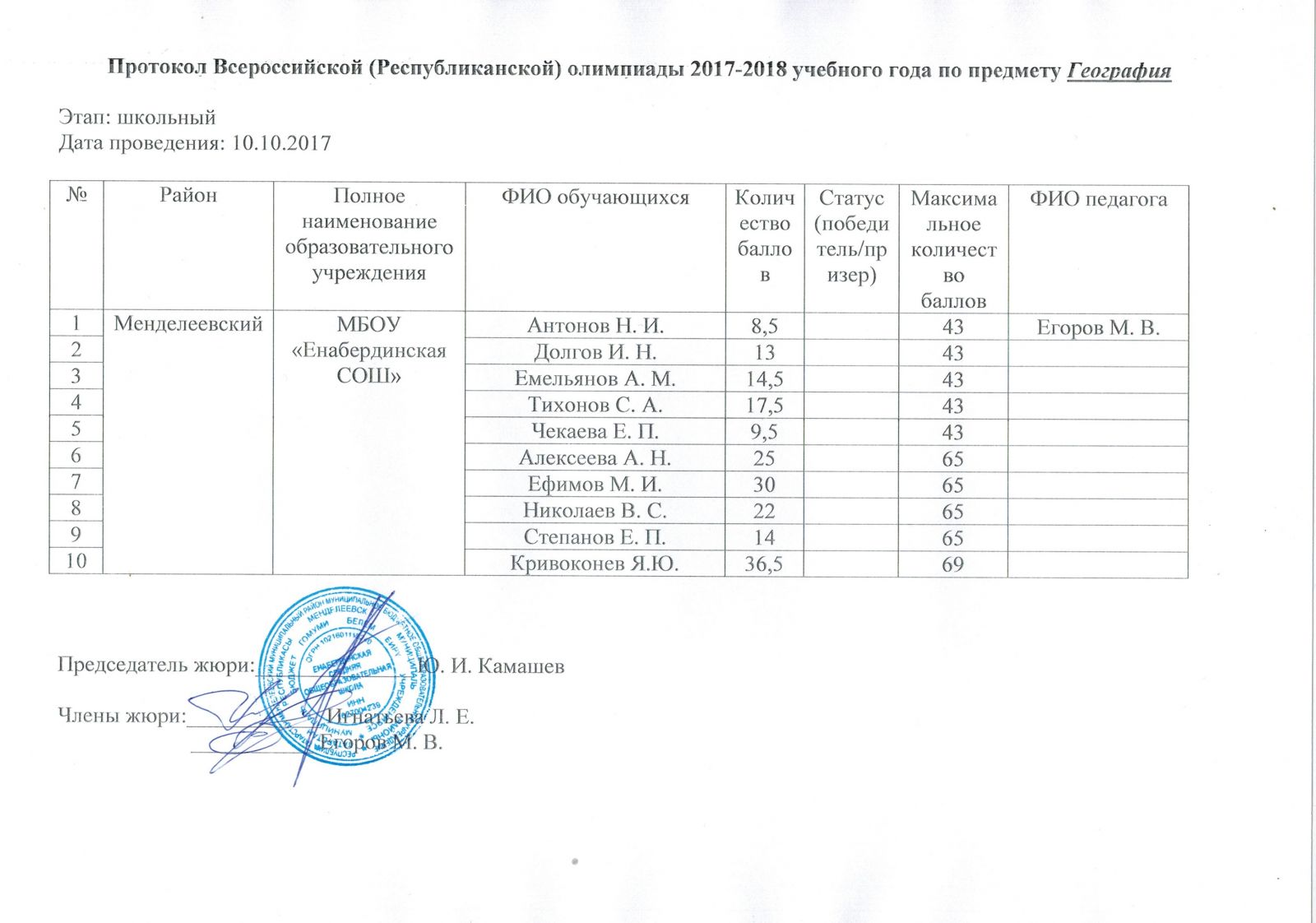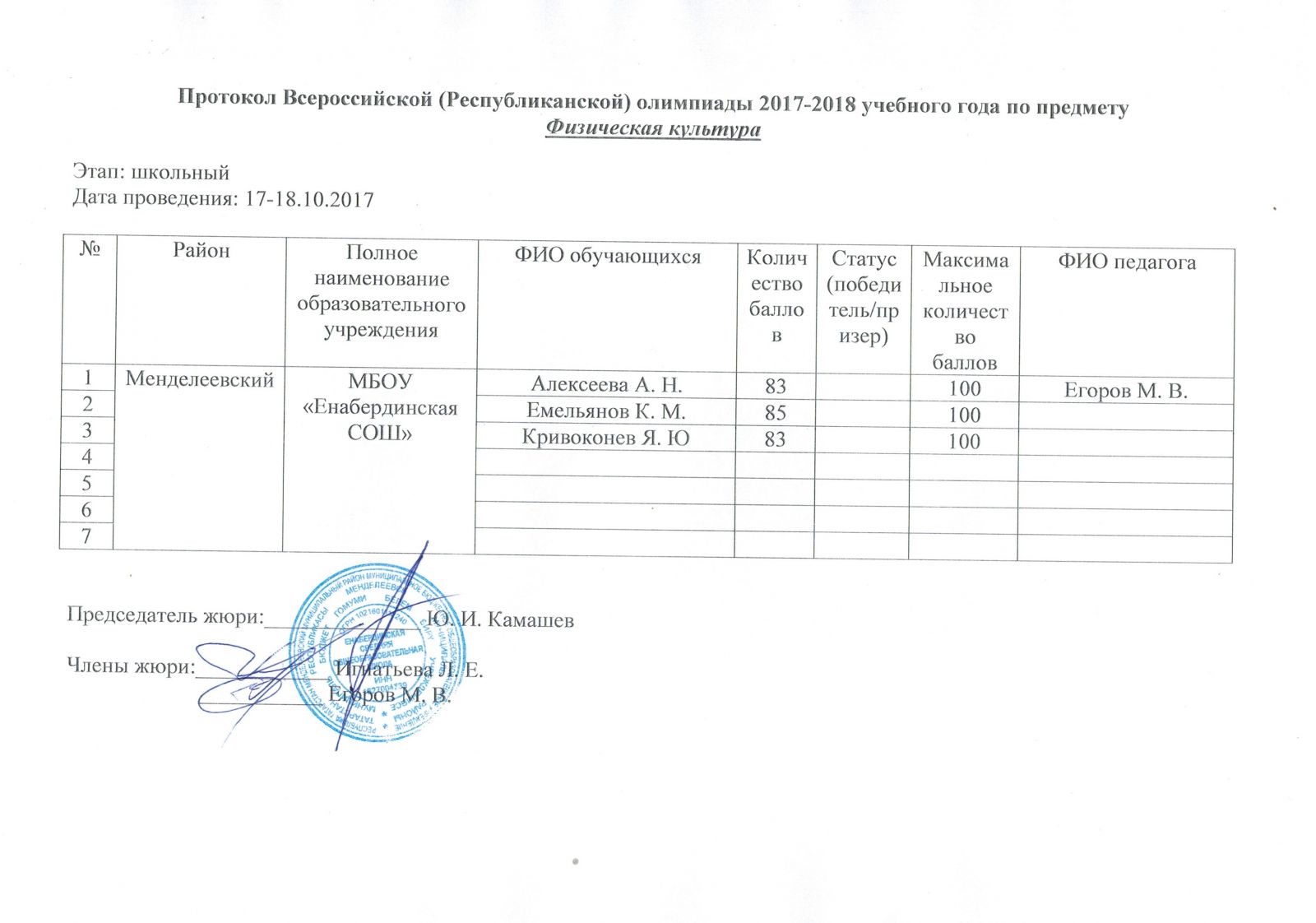 Протоколы олипиад школьного этапа (2025-2026 учебный год): История, Русский язык, Физика, Английский язык, Математика, География, ОБЖ, Биология, Физическая культура, Родной язык и литература (удмуртский), Литература, Руссский язык