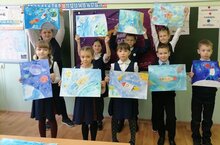 В преддверии дня Космонавтики советником директора по воспитательной работе Элиной Александровной совместно с учащимися была создана выставка рисунков "Гагарин вокруг Земли"...