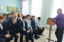 22 февраля в гимназии состоялась встреча с подполковником полиции, ветераном боевых действий, специалистом кадров отдела МВД по Менделеевскому району Белоноговым Леонидом Александровичем.