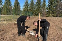 3-я неделя республиканского конкурса #ЭКОВЕСНА названа «Подари Земле сад» . С этой целью участники акции, обучающиеся 9 класса Васильев Егор и Григорьев Всеволод, под руководством учителя биологии Замятиной А.Н. высадили зеленые насаждения на территории школы.