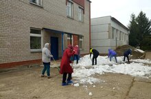 С целью проведения субботника по очистке территории персонал школы раскидал снег на теневой стороне пришкольного участка...