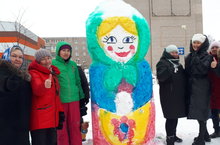 Коллектив нашей школы в городе Менделеевск соорудила Новогоднюю снежную матрешку...