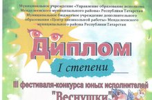 16 апреля 2016г. воспитанница подготовительной группы МБДОУ "Ижевский детский сад "Солнышко" Зиганшина Камилла приняла участие в третьем районном фестивале-конкурсе юных исполнителей "Веснушки"...
