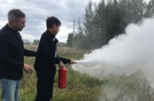 Также ребятам еще раз напомнили о номерах экстренных служб. После учебной эвакуации ученики и сотрудники школы под руководством учителя Миннахметова А.Б. отработали практические навыки тушения пожара при помощи огнетушителя. -