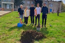 Сегодня ученики 9 класса вместе с директором школы, Риммой Борисовной, и классным руководителем, Айратом Багдануровичем, посадили на пришкольном участке 3 саженца яблонь. Таким образом ребята решили оставить память о себе другим ученикам нашей школы.