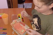 В первую неделю "Помоги пернатым" школьница дома сделала скворечник своими руками, покрасила его, чтобы птицам было не только удобно, и но приятно, где поесть.