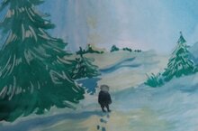 Ученики нарисовали зимние новогодние картины, украсили своими работами стену.