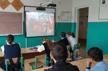 В завершение школьники просмотрели видеоклип " Я вместе с Россией", что значительно подняло им настроение на целый день и вдохновило на старательное обучение.