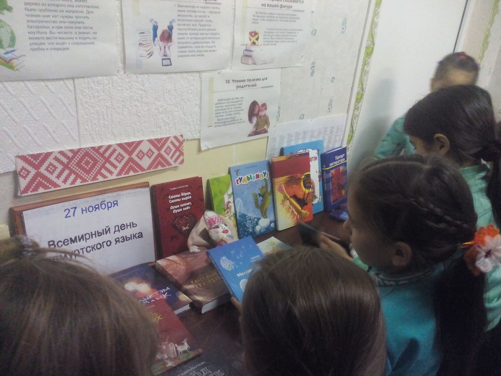 Опубликовано: 28.11.201827 ноября в школьной библиотеке была организована выставка, приуроченная к Всемирному дню удмуртского языка. На выставке были представлены книги, вышедшие в издательстве «Удмуртия» на удмуртском и русском языках удмуртских авторов. Ребята познакомились с новой художественной и учебной литературой, поступившей в библиотеку. Многие учащиеся выбрали себе книгу для прочтения.