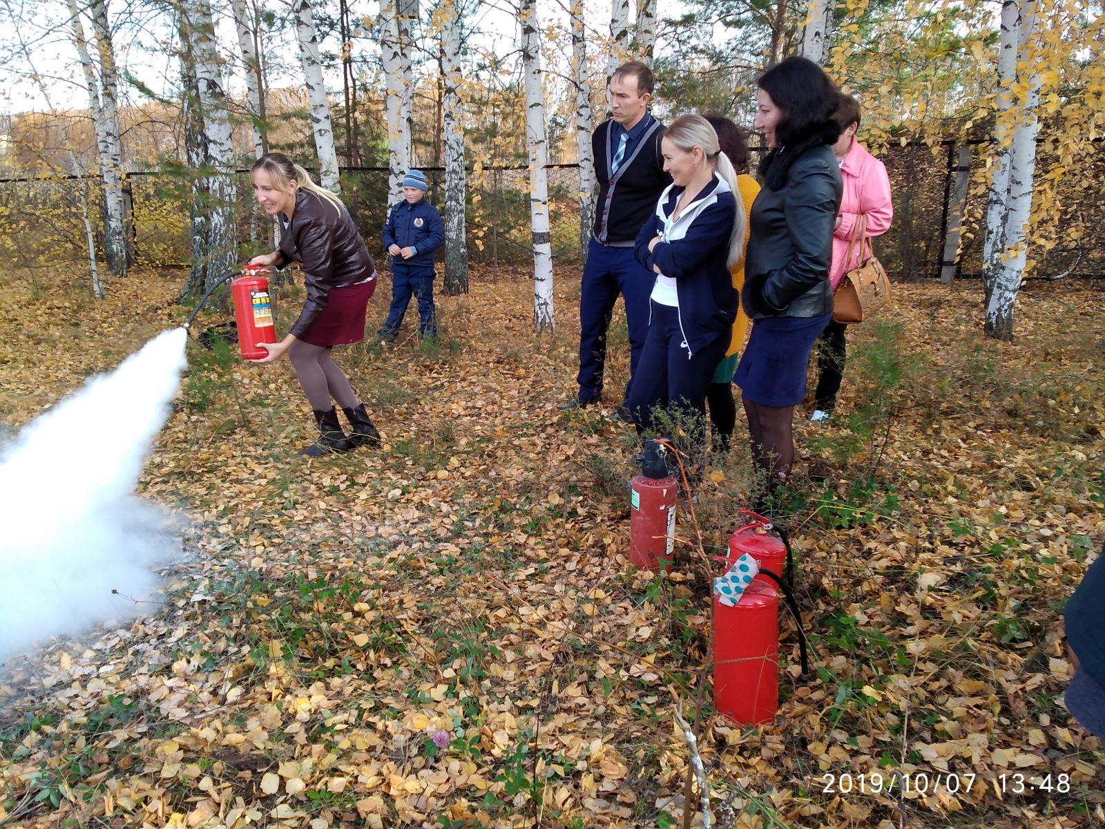 На этот раз для технического и педагогического персонала школы проведено практическое занятие по тушению пожара с использованием огнетушителей ОП. Каждый персонал и технический сотрудник тушили огонь огнетушителем. Все справились.