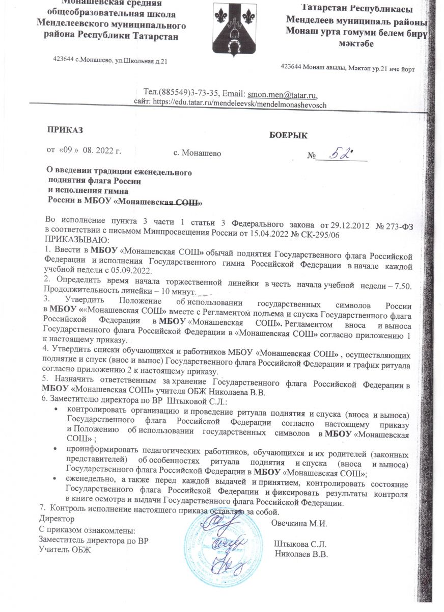 7. Приказ о организации изучения государственных символах в МБОУ "Монашевская СОШ