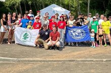 Пока водолазы очищали дно от мусора, мы собрали мусор на берегу. Завершился субботник чаепитием и общей фотографией на память. -