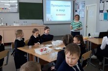 В день науки и день рождения Д.И.Менделеева 4 Б класс посетил кабинет химии . Ученики 10 класса ознакомили учащихся с биографией ученого. Ребята отправились в Путешествие в мир химии. Старшеклассницы показали опыты , чем заинтересовали четвероклассников . Учитель химии Шарафутдинова С.Е. показала мастер-класс и тем самым вовлекла в сам процесс учеников. Ребята с интересом наблюдали за опытом, отвечали на вопросы и обсуждали, почему в пробирках поменяли цвета растворы.
