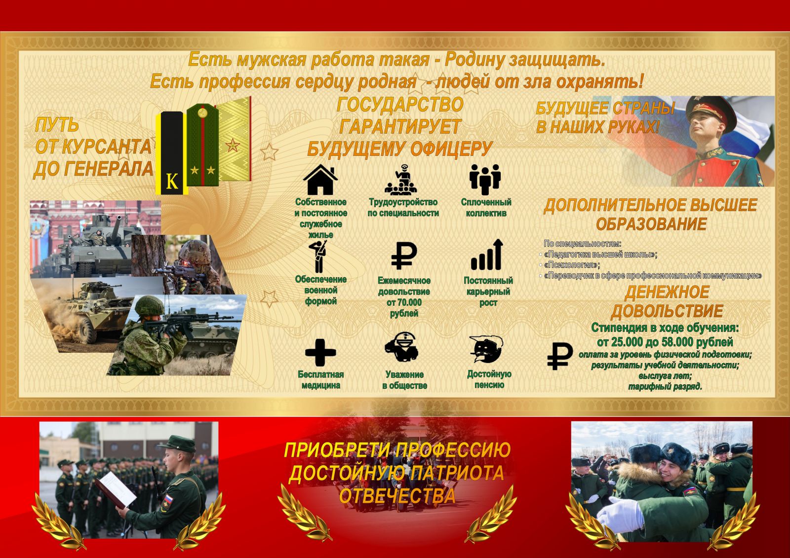 Информация о поступлении в Высшие военно-учебные заведения Министерства обороны расположена во вкладке "Выпускникам" далее "Профориентация"