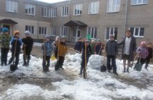 15 апреля учащиеся и учителя вновь вышли убираться на территорию школы...