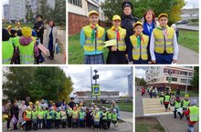 20 сентября юидовцы 5Б класса (кл.руководитель Кочергина О.Ю) МБОУ «СОШ №3» под руководством начальника отделения отдела профилактики ГБУ «БДД» Гимаевой Ф.Г. и капитана полиции, инспектора ОГИББД ОМВД России по Менделеевскому району Хусаинова С.С. с учащимися 1А класса (кл.руководитель Тешабаева Р.Р.) организовали и провели акцию «Шагающий автобус».