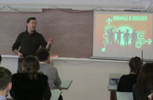 Бүген мәктәбебездә 9Б сыйныфы укучылары (Жетыбаева Т.Ж.) Душаков Евгений белән очраштылар.
