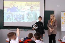 Якынлашып килүче Сәламәтлек көне уңаеннан лицей укучылары белән спортның файдасы турында сөйләштеләр. Аерым алганда, 1нче сыйныф укучыларына хоккей турында 7нче сыйныфтан Даниил Вәгыйзов сөйләде. Спортчы инде биш ел хоккей белән шөгыльләнә һәм үз мавыгуын бик ярата. Беренче сыйныф укучылары Данилны кызыксынып тыңладылар, сораулар бирделәр һәм үз теләкләре белән уртаклаштылар. Очрашу ахырында яшь хоккейчы теләгән һәркемгә голкиперның шлемын үлчәргә рөхсәт итә.