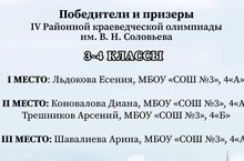 18 апрельдә В. Н.Соловьев исемендәге IV район туган якны өйрәнү олимпиадасы узды. 5 майда туган якны өйрәнү музее нәтиҗәләрен бастыра. Безнең лицейның 4 нче сыйныф укучылары, яшь крайны өйрәнүчеләр, район тарихы турында искиткеч белемнәрен күрсәттеләр. Льдокова Есения, 4А сыйныф укучысы (педагогы Р.Р. Тешабаева) җиңүче булды. Призерлар булып Коновалова Диана, Шавалиева Арина 4А сыйныф укучылары (педагогы Тешабаева Р. Р.) һәм Трешников Арсений, 4Б сыйныф укучысы (педагогы Килеева С. Н.)
