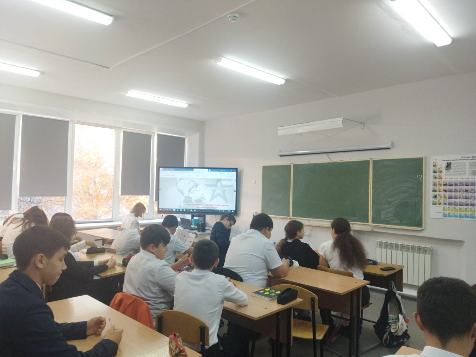 Безнең мәктәптә 17 октябрьдә ачык «Батырлык дәресе» һәм «Солдатка хат» Бөтенроссия акциясе узды. Акциядә 8б сыйныф укучылары да катнашты.