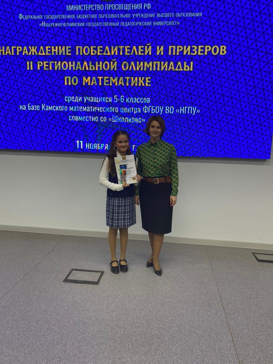 Бүген НДПУда Кама математика үзәгенең математика буенча II региональ олимпиадасында җиңүчеләрне бүләкләү тантанасы булды. Кама математика үзәге "Школково" белән берлектә 26 октябрьдә математика буенча олимпиада үткәрде. Масштаблы интеллектуаль ярышта 5-6 сыйныфларда белем алучы 450 укучы катнашты. Җиңүчеләр һәм призерлар арасында безнең мәктәп укучылары: Буланова Валерия (5Б класс), Петрова Анастасия (5Б класс), Загретдинов Марсель (5В класс) бар иде, укытучы: Гончар Светлана Николаевна
