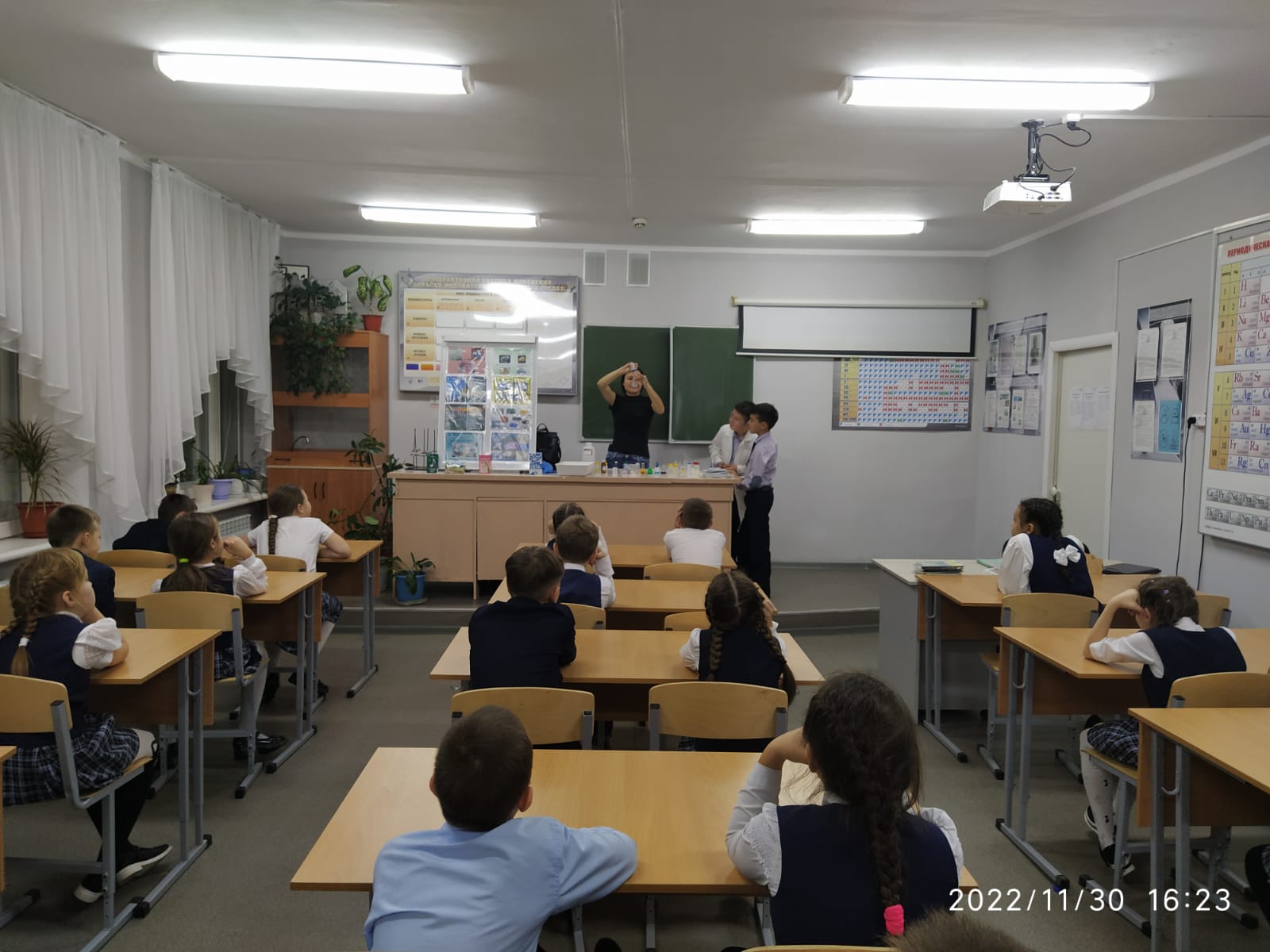 Бүген, 30 ноябрьдә, "Аммоний" АҖ хезмәткәре, Дер Рената Дамир кызы 4А сыйныф укучылары өчен "Химия дөньясына сәяхәт" мастер-классы үткәрде