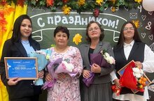 Яшь укытучылар Абзалова К.М., Демьянова К.Е. Менделеевск район җитәкчесеннән һәм АО "Аммоний"белән берлектә грант белән бүләкләнделәр. -