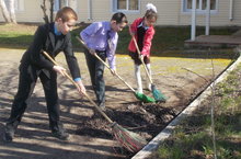 Начальная школа благоустраивает территорию школы. 27.04.2016