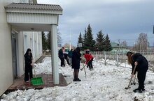 Сегодня на территории нашей школы проходит средник. Силами учителей и учащихся мы приводим порядок возле школы.