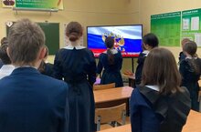 Сегодня утром в нашей школе, по традиции, исполнили Гимн РФ.,позже все учашиеся разошлись по классам на "Разговор о важном".