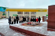 Обучающиеся 5 "А" и 8 "Б" классов с советником директора Ольгой Александровной почтили память погибших солдат во время ВОВ минутой молчания и возложили к памятнику цветы у Вечного огня. -