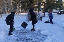 После сильного снегопада участники волонтерского движения "Юные тимуровцы" МБОУ "СОШ 7" очистили от снега территорию Мемориала памяти участникам и жертвам радиационных аварий и ликвидаторам последствий катастрофы на Чернобыльской АЭС.
