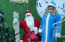 Учащиеся 8 класса Будник Анастасия и Тагиров Алмаз в костюмах главных героев Новогоднего торжества приняли участие в параде, водили хороводы вокруг ёлки, играли с детьми и угощали их сладостями. -