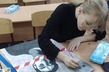В кинотеатре "Юность" учащиеся 7 школы побывали на выставке клуба "Талантливые бабушки".