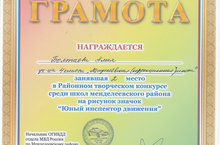 Учащаяся 4 класса вместе с классным руководителем Галиуллиной Г.Р. приняли активное участие в Районном творческом конкурсе среди школ Менделеевского района на рисунок-значок «Юный инспектор движения» и заняла 2 место...