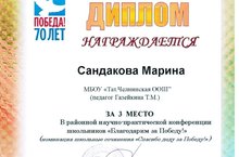 16 апреля ученица 7 класса МБОУ "Тат.Челнинская ООШ" Сандакова М. представляла школу и свою работу на районной научно - практической конференции школьников в ЦДТ...