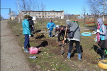 25 апреля 2014 года актив школы принял участие в посадке деревьев на территории будущего "Парка победы" родного села...