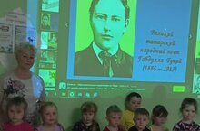 26 апрельдә безнең балалар бакчасында тәрбияче китапханәче белән берлектә балаларда кызыксыну, иҗади сәләтләр үстерү, балаларны бөек татар шагыйренең әкиятләре һәм шигырьләре белән таныштыру аша татар әдәбиятына җәлеп итү максатыннан «Г.Тукай әсәрләре буенча сәяхәт» дигән дәрес үткәрделәр. Алдан эш башкарыла: «Гали һәм кәҗә»әкиятләрен уку,«Бала һәм Күбәләк»шигырен уку, "Шүрәле" һәм "Су анасы" әкиятләрен карау, балалар әкият геройларын әкиятләрдән өзекләр буенча кызыксынып фаразлыйлар, аларны иллюстрацияләрдә табалар. Шулай ук Г .Тукайның«Бала һәм Күбәләк " әсәрләреннән Күбәләк ясаганнар. Балачакта иң яхшы шагыйрьләр һәм язучыларның әсәрләреннән алган тәэсирләр балага югары әхлакый сыйфатлар белән якты, иҗади шәхес булырга ярдәм итә.
