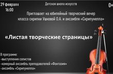 29 февраля в Детской школе искусств прошёл юбилейный концерт класса скрипки Ушковой О.А. и ансамбля « Скрипунелла». На этот творческий вечер приехали выпускники разных лет – участники ансамбля из разных городов: Ижевска, Казани, Перьми, Набережных Челнов, Менделеевска.....