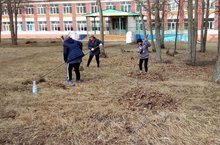 Учителя и учащиеся приняли участие на субботнике.