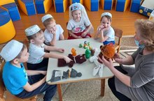 Балаларга “Карт белән төлке” әкиятен укып анализ ясадык.Татар халык әкиятләре геройлары буенча викторина үткәрелде, балалар белән бергәләп аларның кайсы әкиятләрдән булуын таптык.